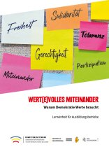 Mit den in dieser Lerneinheit enthaltenen Übungen werden Auszubildende motiviert, über eigene Wertvorstellungen nachzudenken und gemeinsam in einen Austausch darüber zu gehen. Dabei liegt der Fokus auf Reflexions- und gruppendynamischen Aushandlungsprozessen. Zudem werden demokratische Prinzipien verinnerlicht. Das Konzept enthält ausführliche Methodenbeschreibungen sowie Materialien im Anhang. Die Durchführung der Lerneinheit dauert 90 Minuten. Sie kann als alleinstehende Einheit durchgeführt werden.