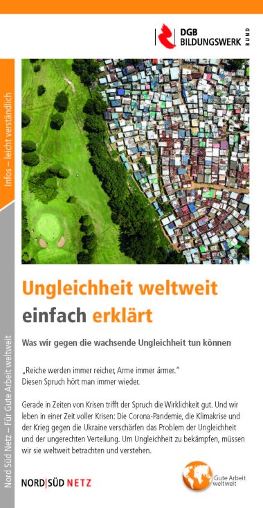 Was ist Ungleichheit? Wie zeigt sich Ungleichheit innerhalb und zwischen Gesellschaften? Welche Ursachen gibt es für Ungleichheit, auch in internationalen Zusammenhängen? Wie verstärkt Politik Ungleichheit und was bedeutet Finanzialisierung? Wie setzen sich Gewerkschaften für mehr Gerechtigkeit hier und weltweit ein?